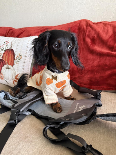 I recently tried this dog carrier harness and it exceeded my expectations! The padded straps are super comfortable, and it’s easy to put on. My 11-month-old dachshund Millie, who’s usually hyper, instantly relaxed and even dozed off. The tail hole made her feel secure, and she stayed calm the whole walk. My only suggestion would be a bit more adjustability on the torso straps for smaller pups. Overall, I’d give it 4.5/5 — perfect for walks, hikes, markets, or dogs with mobility challenges!
